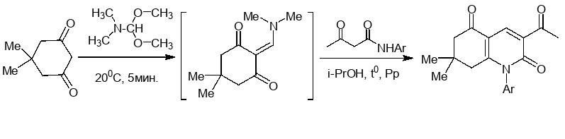 - Մշակվել են 3-ացետիլ-7,7-դիմեթիլ-1-արիլ-7,8-դիհիդրոխինոլին-2,5-(1H,6H)-դիոնների ստացման եղանակ։